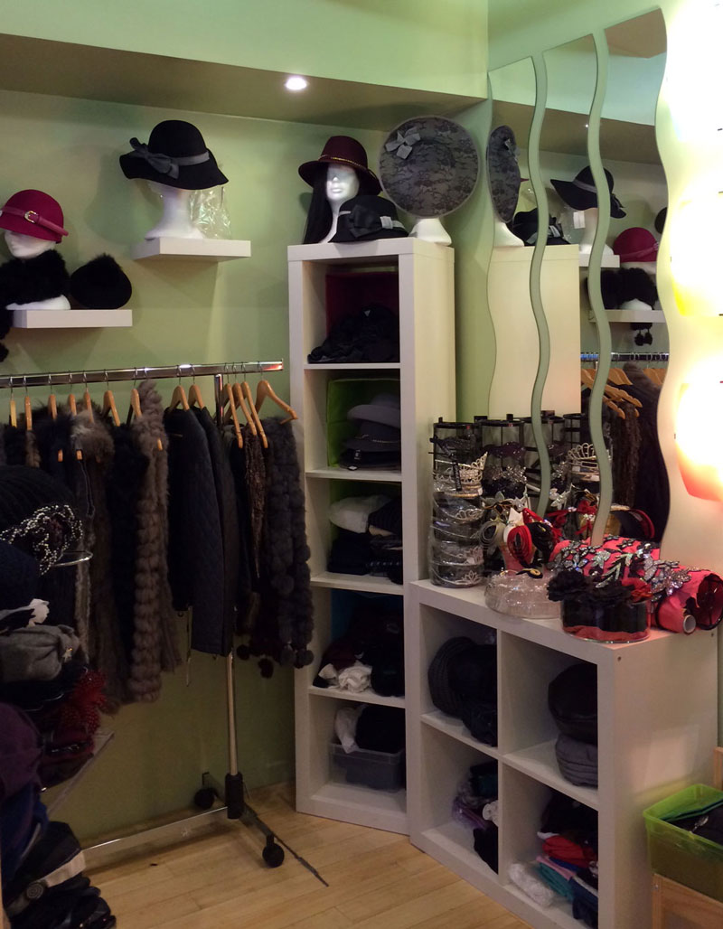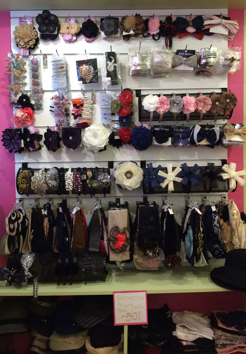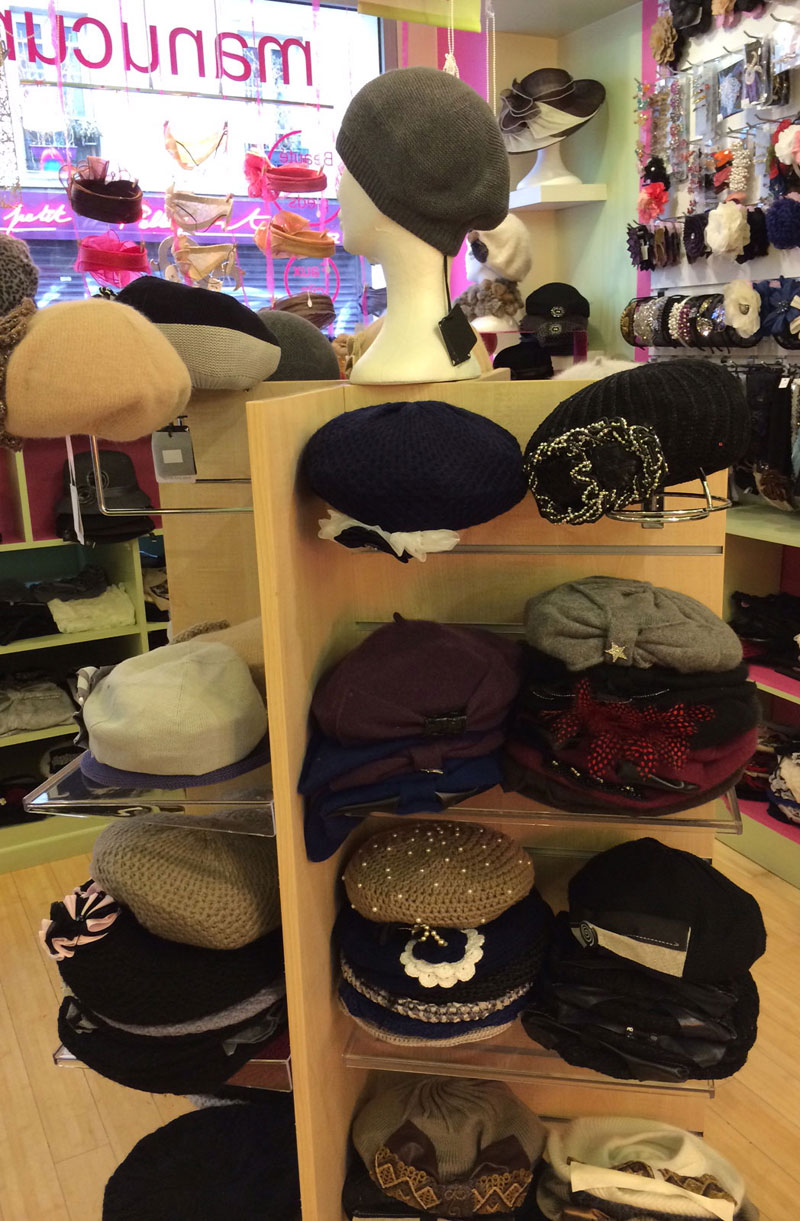 Située au 57 rue d'Hautpoul, cette boutique climatisée et décorée avec des couleurs chatoyantes vous accueillera, et vous proposera tous ses accessoires d'habillement pour vos tenues de tous les jours ou pour une cérémonie : béret à partir de 15 €uros (béret de marque comme Chirelle D.), chapeau à partir de 19 €uros (grandes marques comme Chapotin par exemple).