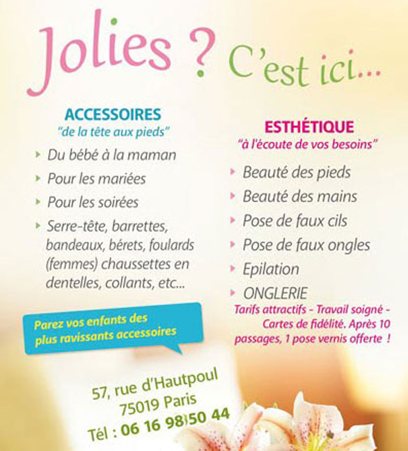 Jolies C'est Ici est la boutique par excellence pour vous Mesdames et Mesdemoiselles en plein quartier juif du 19 ème arrondissement.