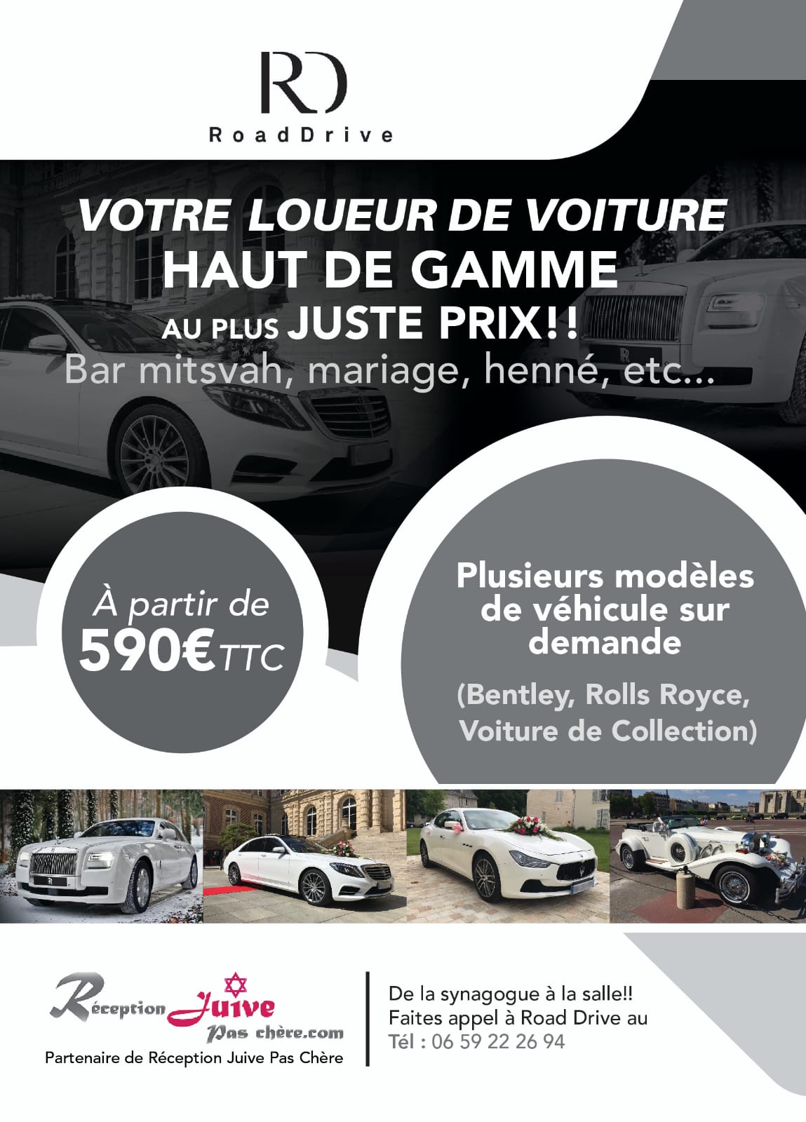 N'hésitez plus, réservez votre véhicule de prestige et contactez Road Drive de la part de Réception Juive Pas Chère, le meilleur accueil vous sera réservé.